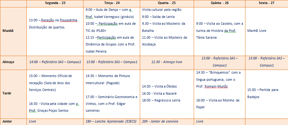 Calendário do 2º semestre
